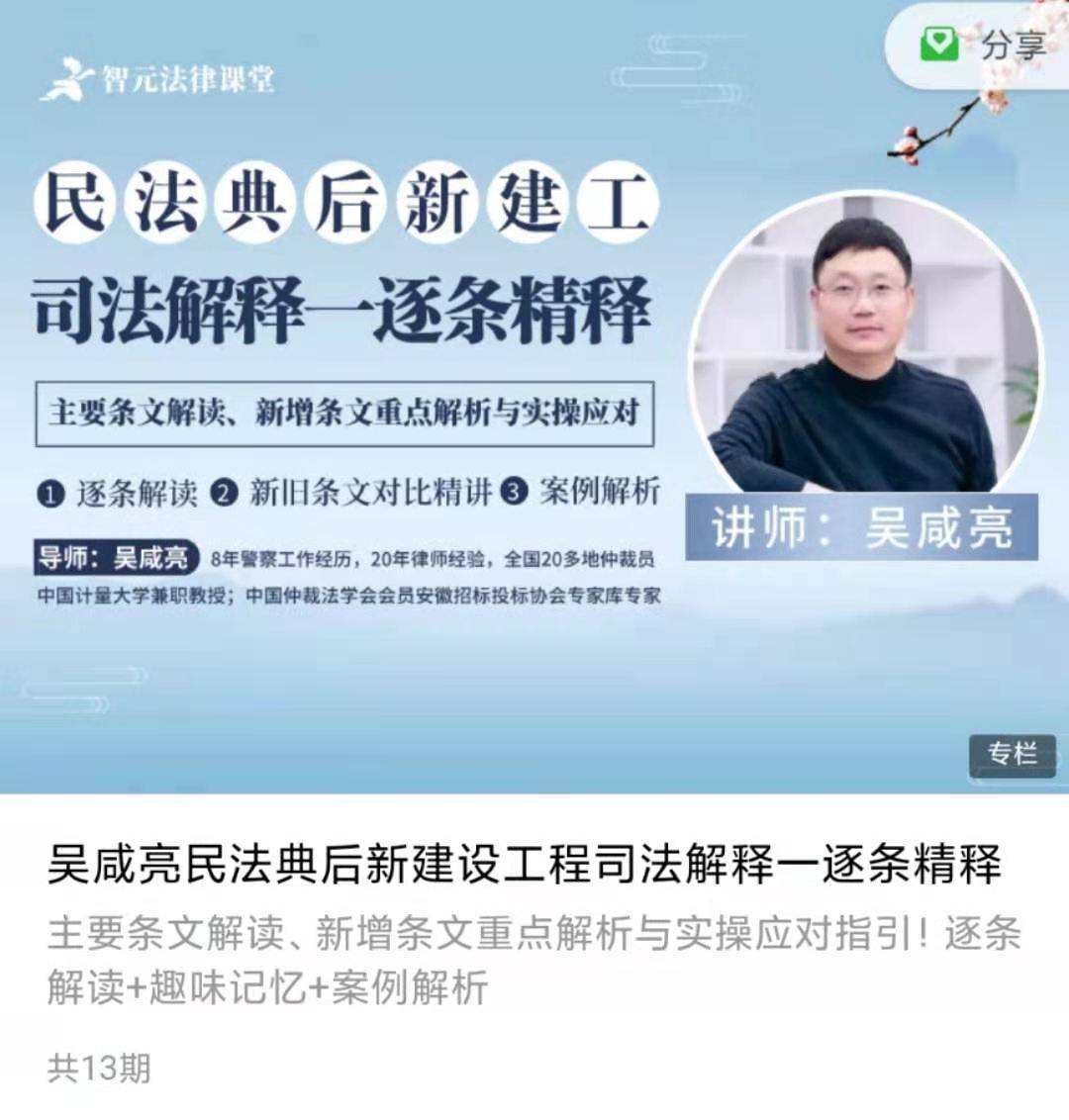《民法典后新建设工程司法解释一逐条精释》【吴咸亮】